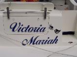 | We also do a lot of custom boat lettering. We will do the layout for you and let you pick out the type style and colors you want to use ! |